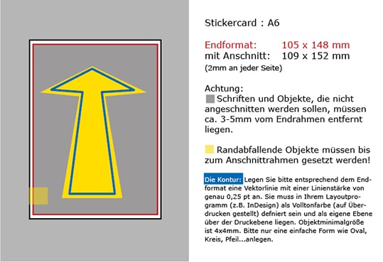 | Aufkleber Maximalgröße: | Endformat der Karte abzgl. 10 mm |